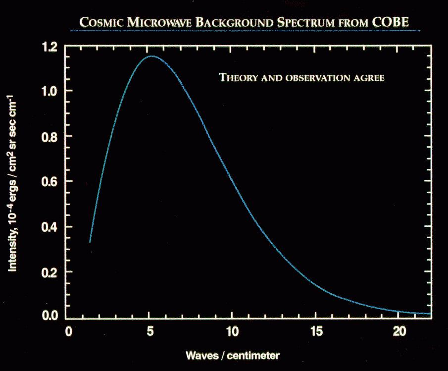A theoretical blackbody curve with 34 COBE data points equally