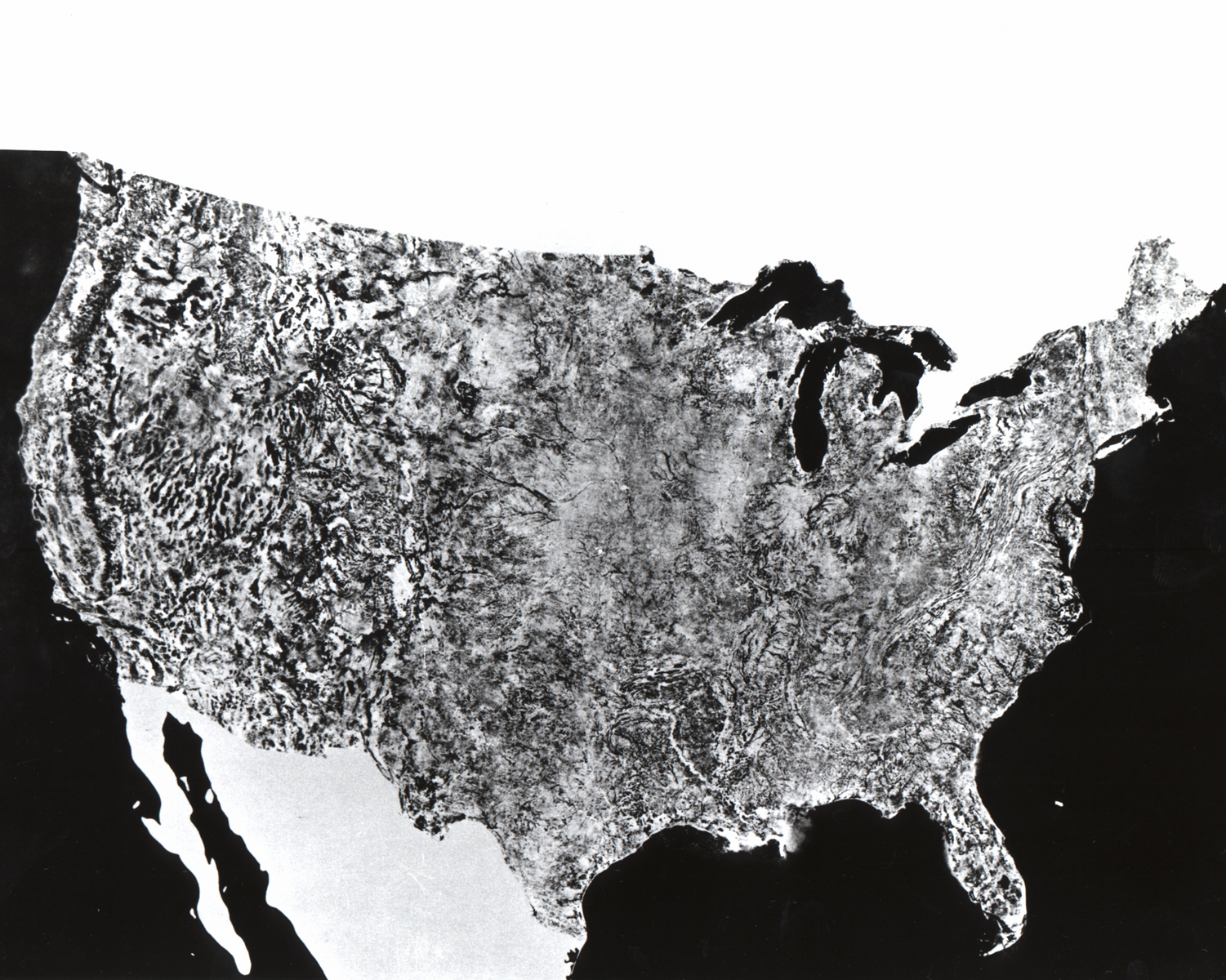 Mosaic photo map of USA assembled 1972jul25--1972oct31 from 912 km.