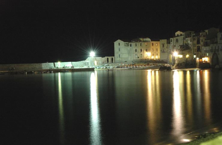 The mole at Cefalu looking east at night.
