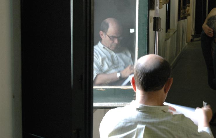 Me in my glory in the green shirt in the center in the midground. The profile is rather ghastly: don't I ever comb my hair or change my shirt? My eyes are open, but I'm probably somnomulent.