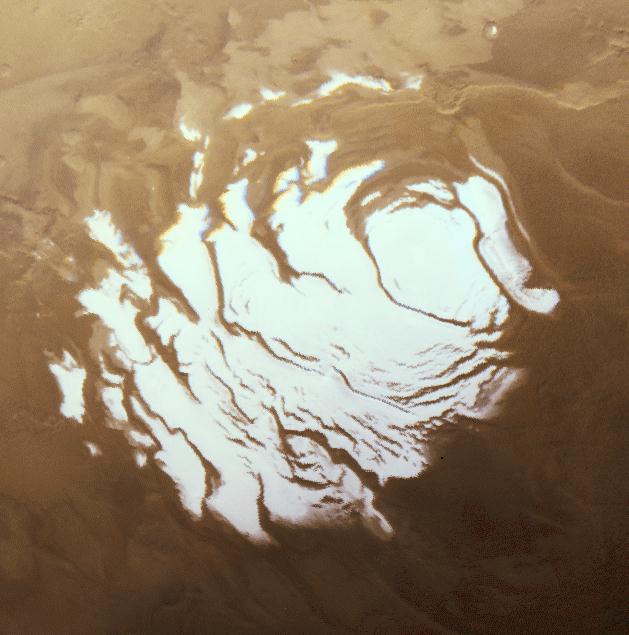 A Viking Orbiter image of the southern polar cap in the southern summer.