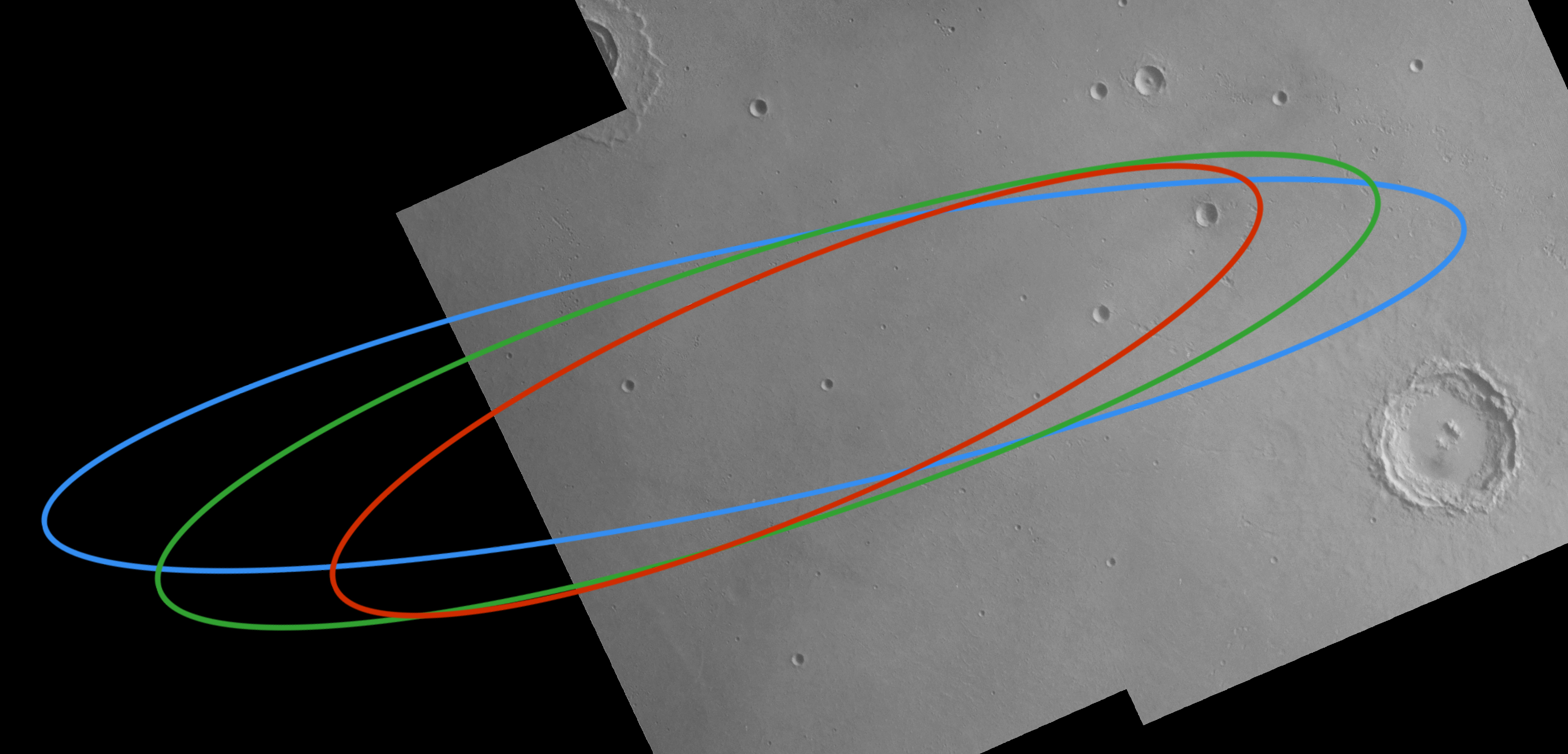 The ellipses on the image presumably mark out the landing target area.