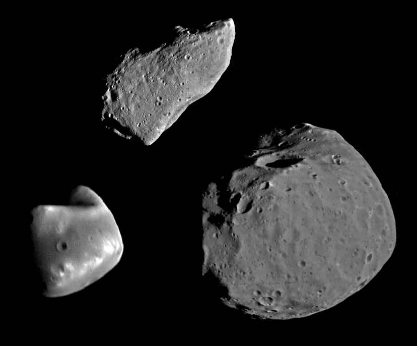 A comparison of Phobos (right), Deimos (left),
