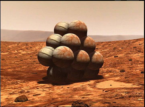 Airbag encased and at rest on Mars.