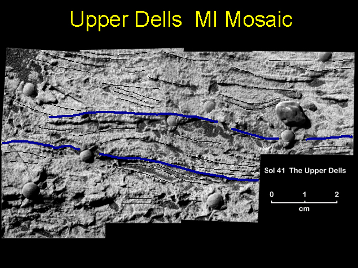 The BLACK LINES trace the cross-lamination and the BLUE LINES possible boundaries between sets of cross-laminae. Possibly the sets were laid down at different times???.