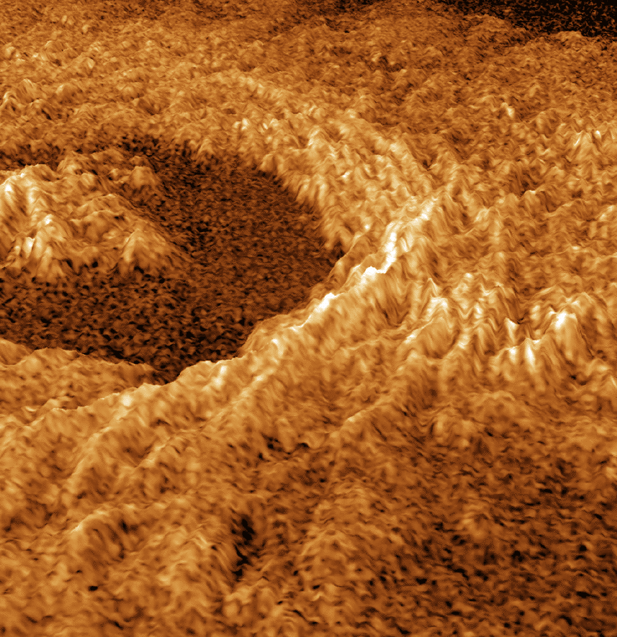 A 3-d model of Venus impact crater Golubkina based Magellan radar mapping.